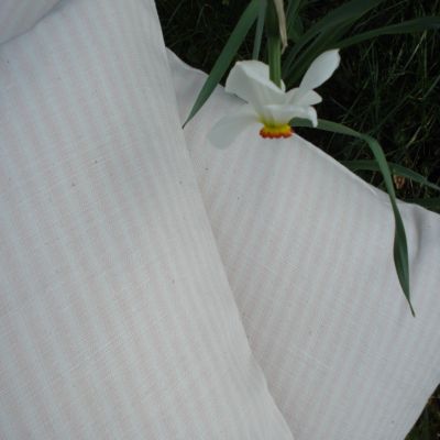 Halbleinen, Webstreifen, echte Perlmuttknöpfe, Größe etwa 60 x 40 cm